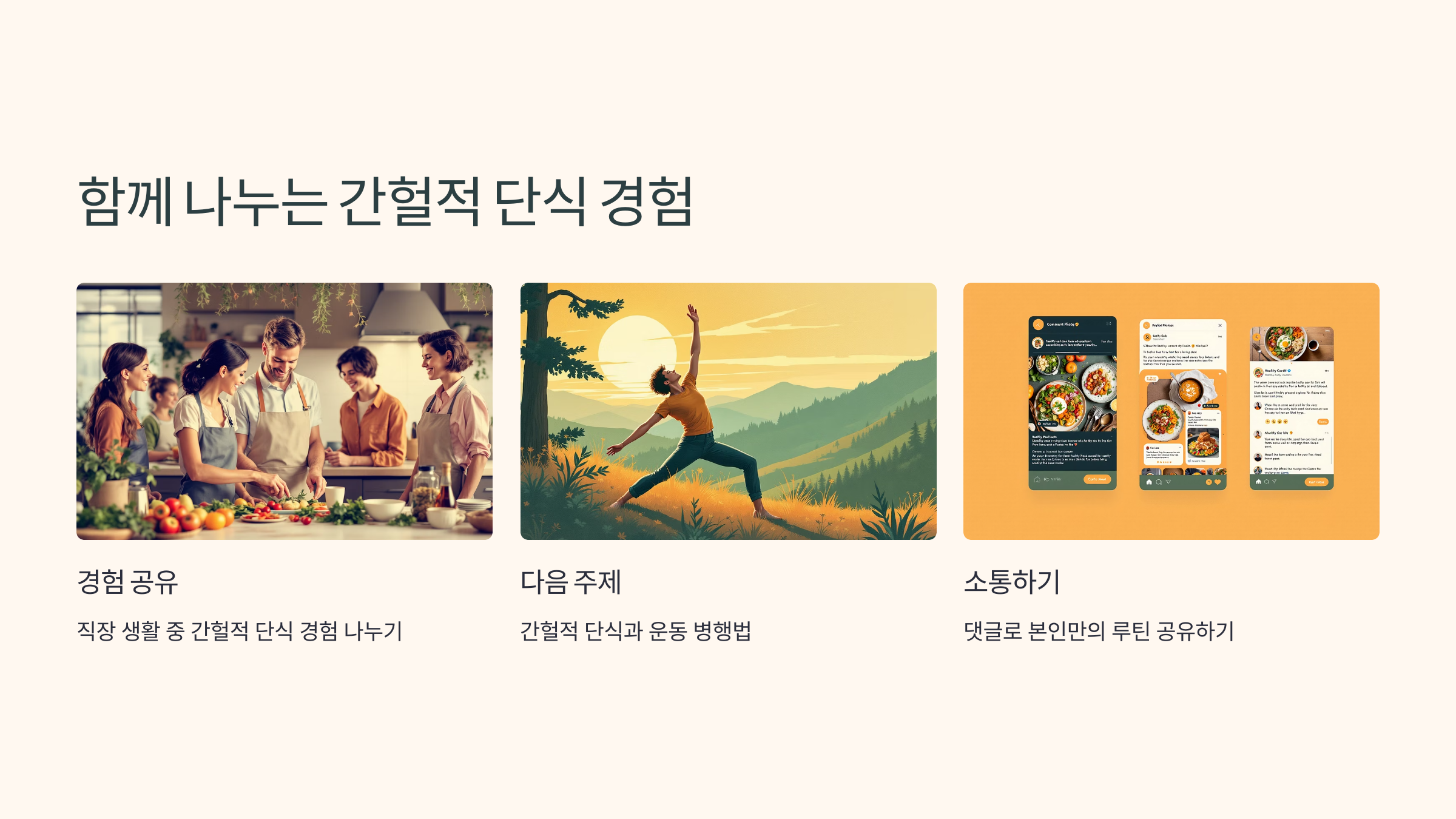 다음 글에서는 간헐적 단식과 운동 병행법에 대해 더 자세히 다뤄볼게요. 기대해 주세요!