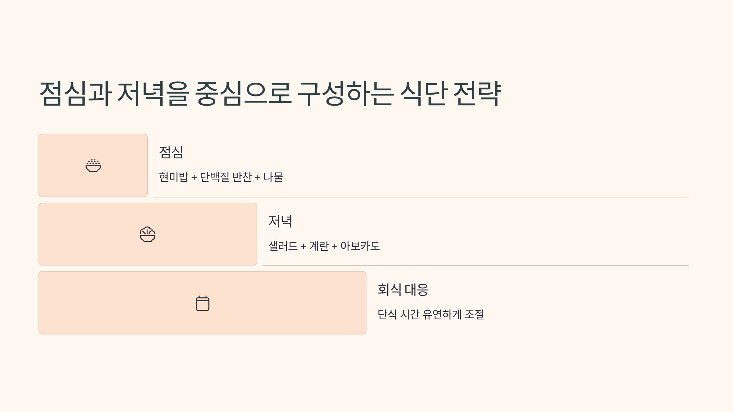 - 점심과 저녁을 중심으로 구성하는 식단 전략