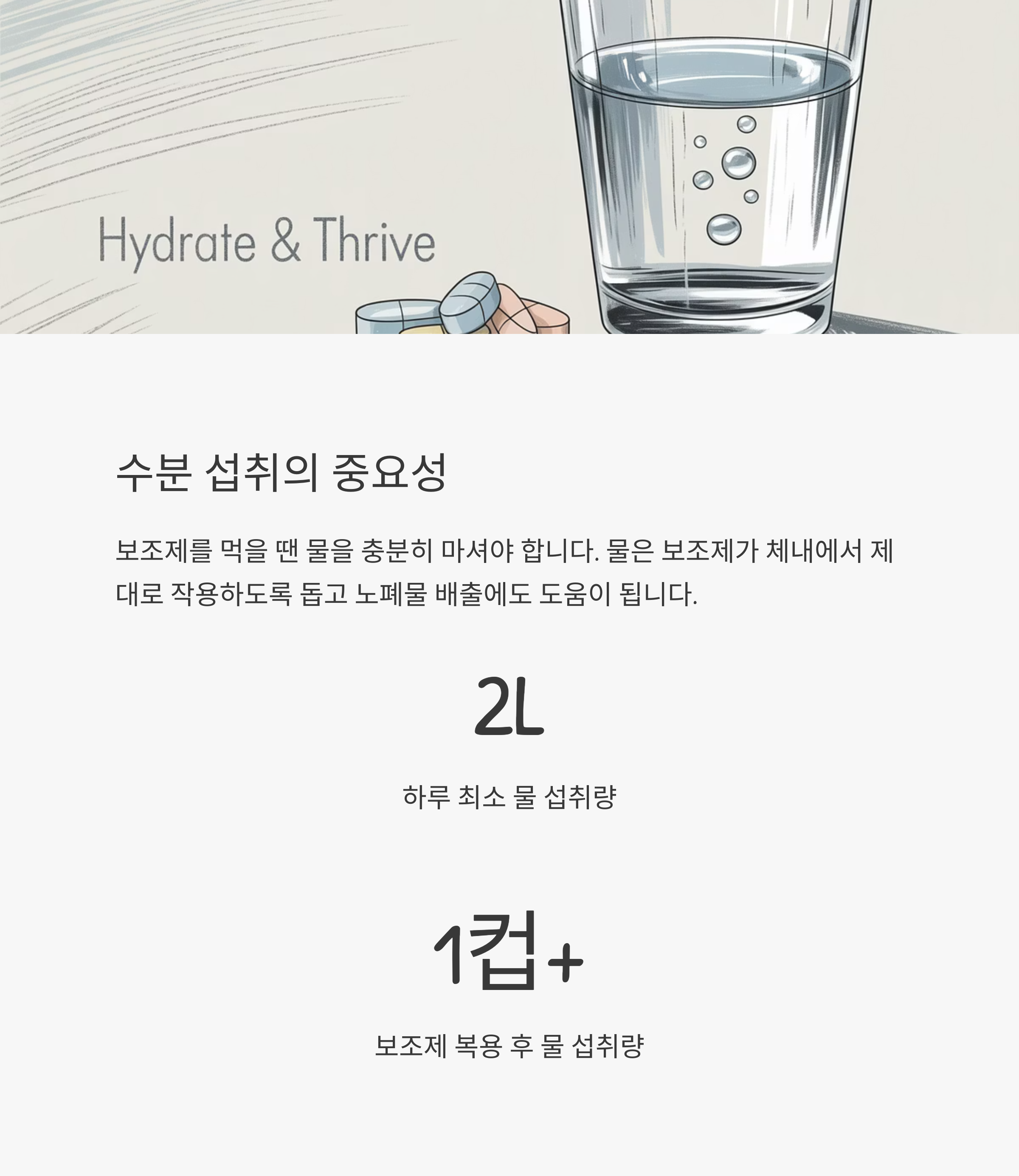 보조제를 먹을 땐 물 많이 마시는 거 정말 중요해요!
