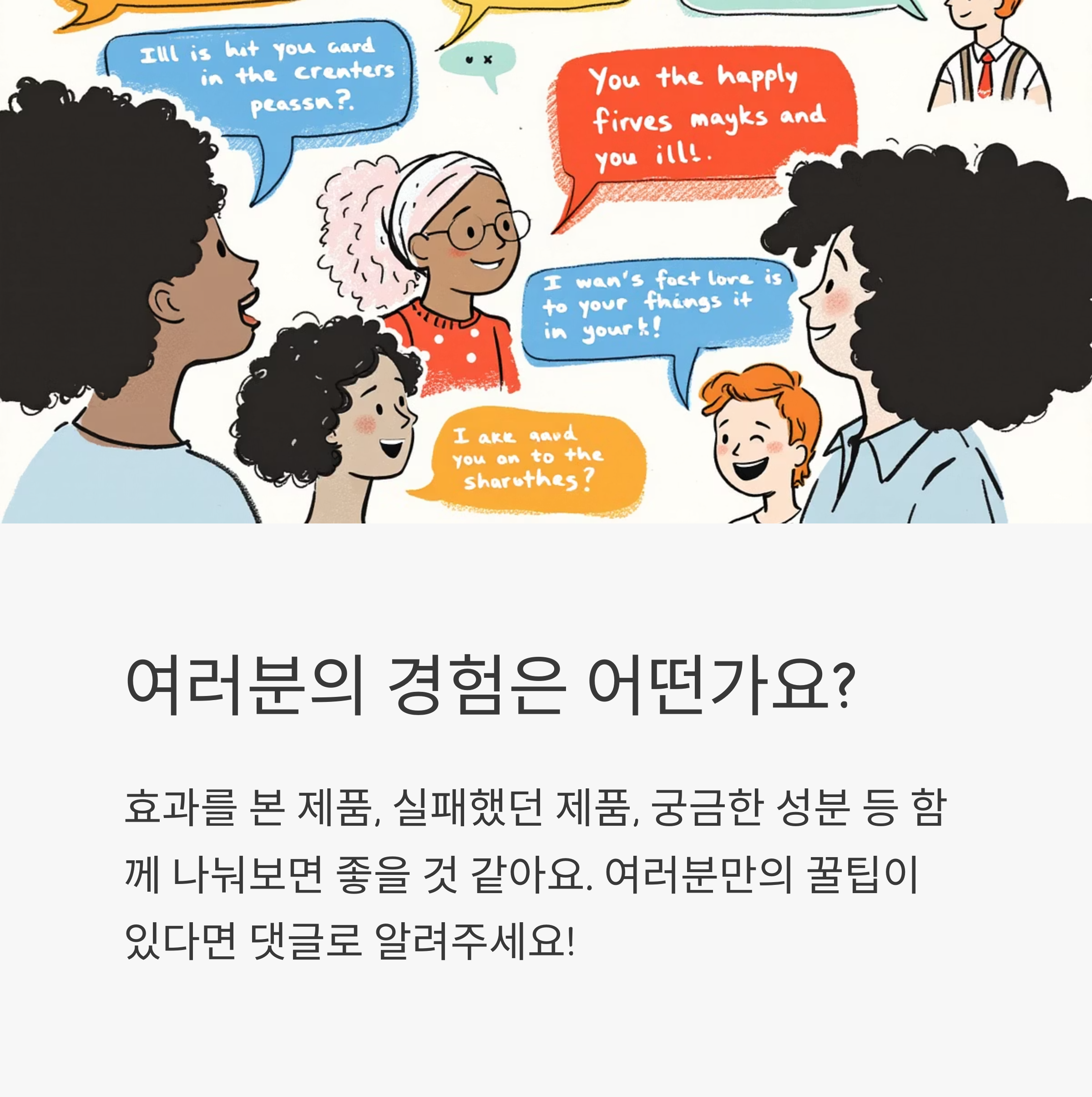 효과를 본 제품, 실패했던 제품, 궁금한 성분 등 함께 나눠보면 좋을 것 같아요🙂