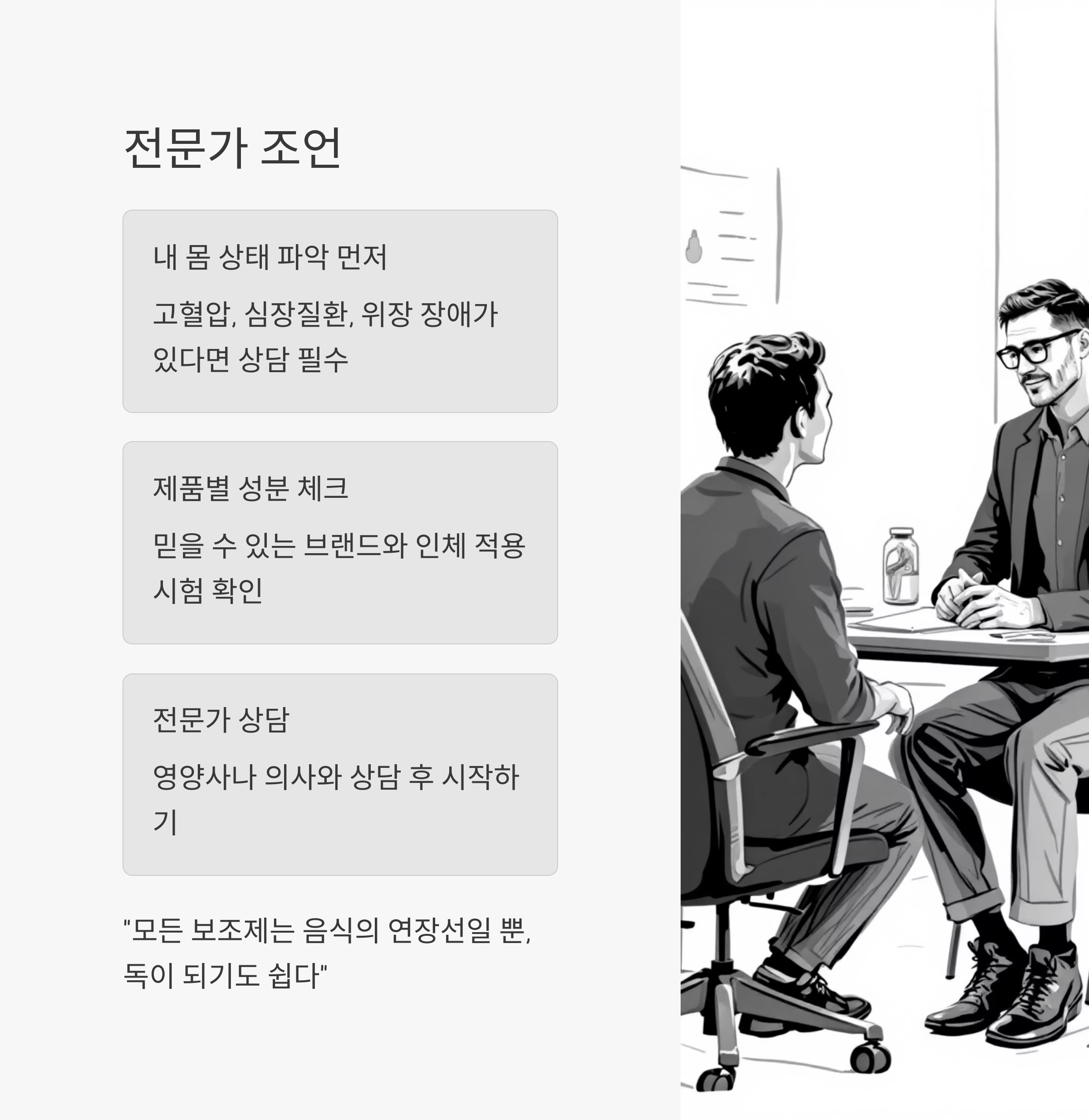 보조제는 어디까지나 ‘보조’일 뿐, 체질에 안 맞으면 부작용이 생길 수 있어요.