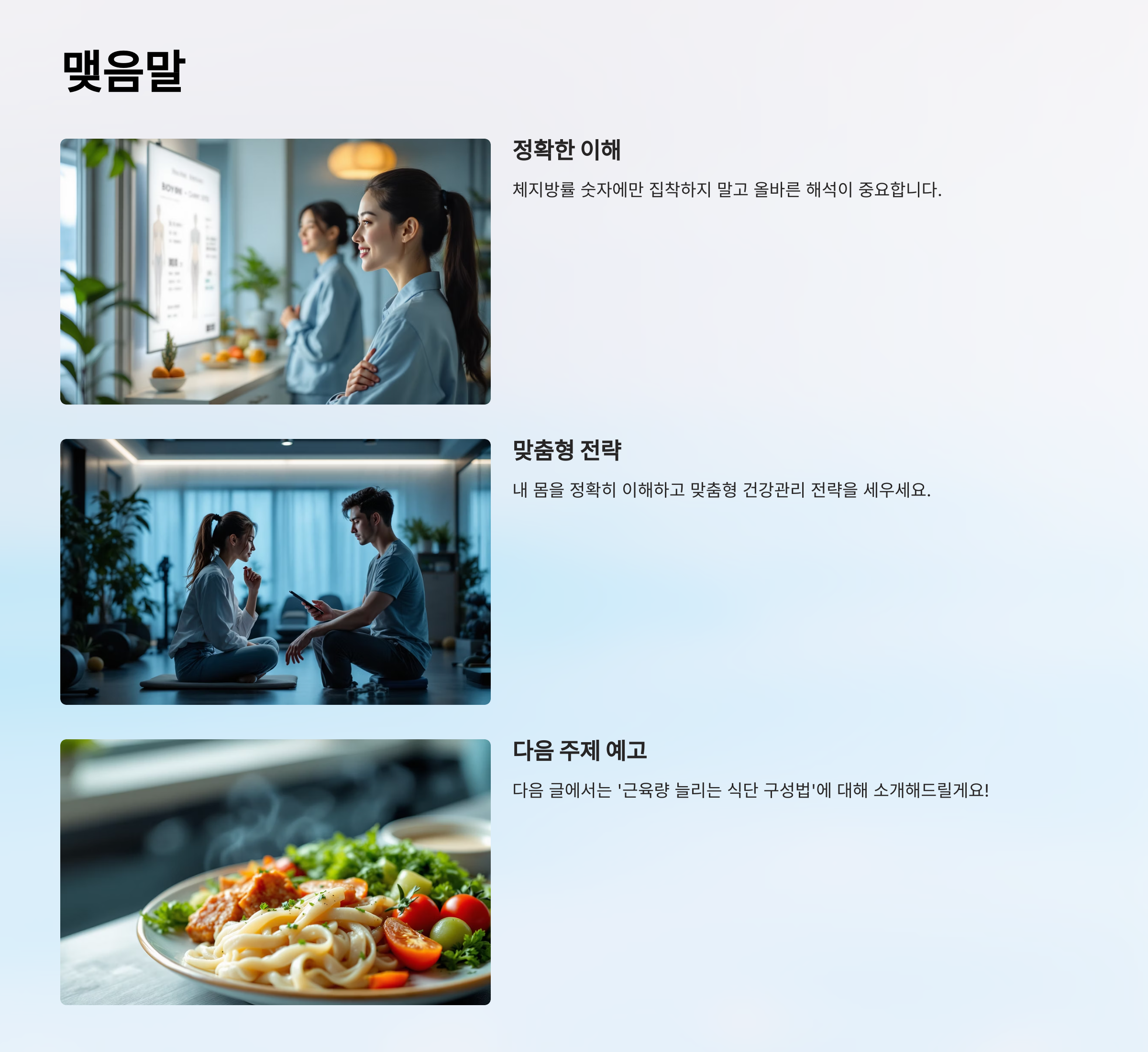 진짜 중요한 건 내 몸을 정확히 이해하고, 맞춤형 전략을 세우는 거예요.