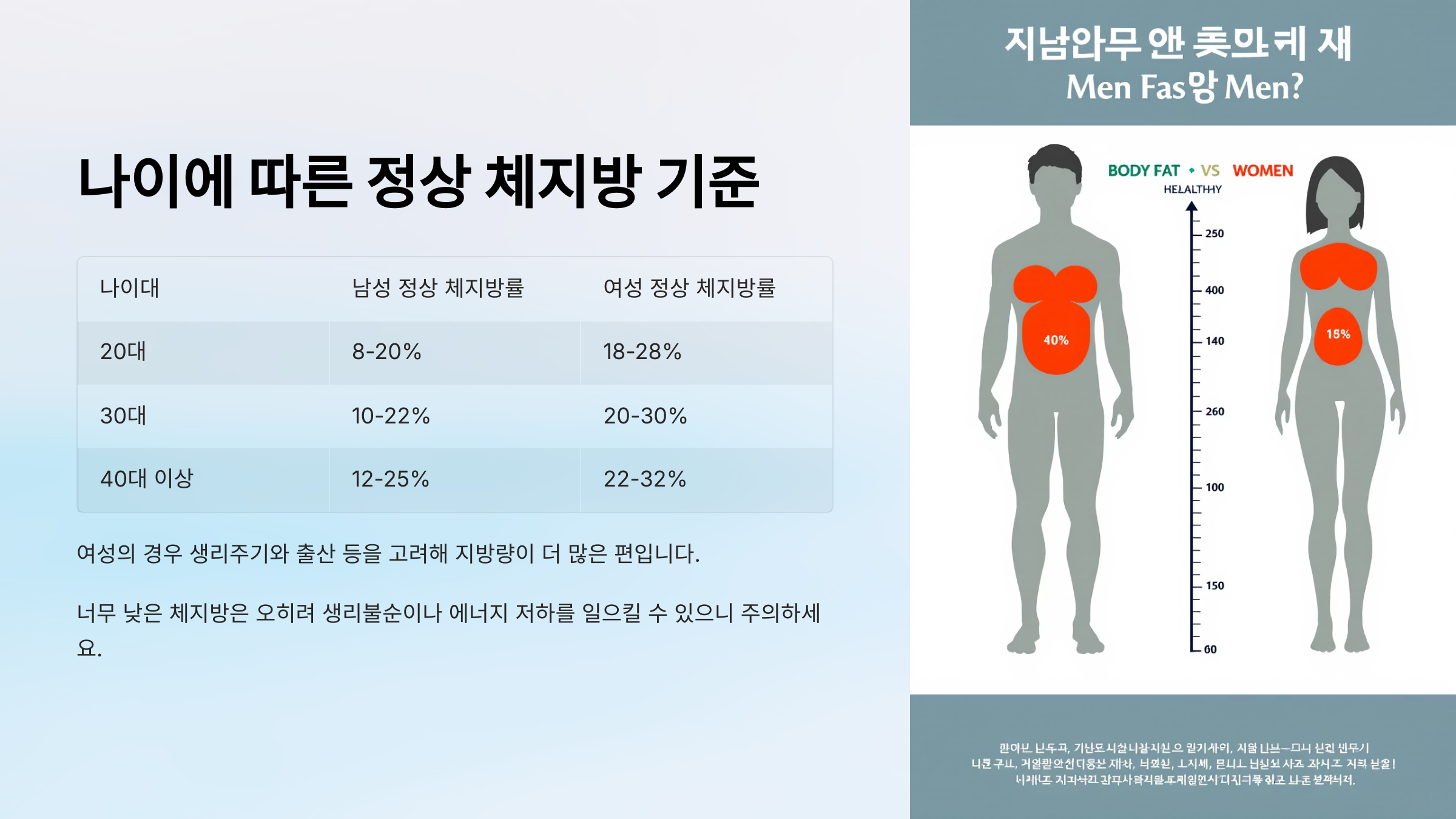 너무 낮은 체지방은 오히려 생리불순이나 에너지 저하를 일으킬 수 있으니 주의하세요.